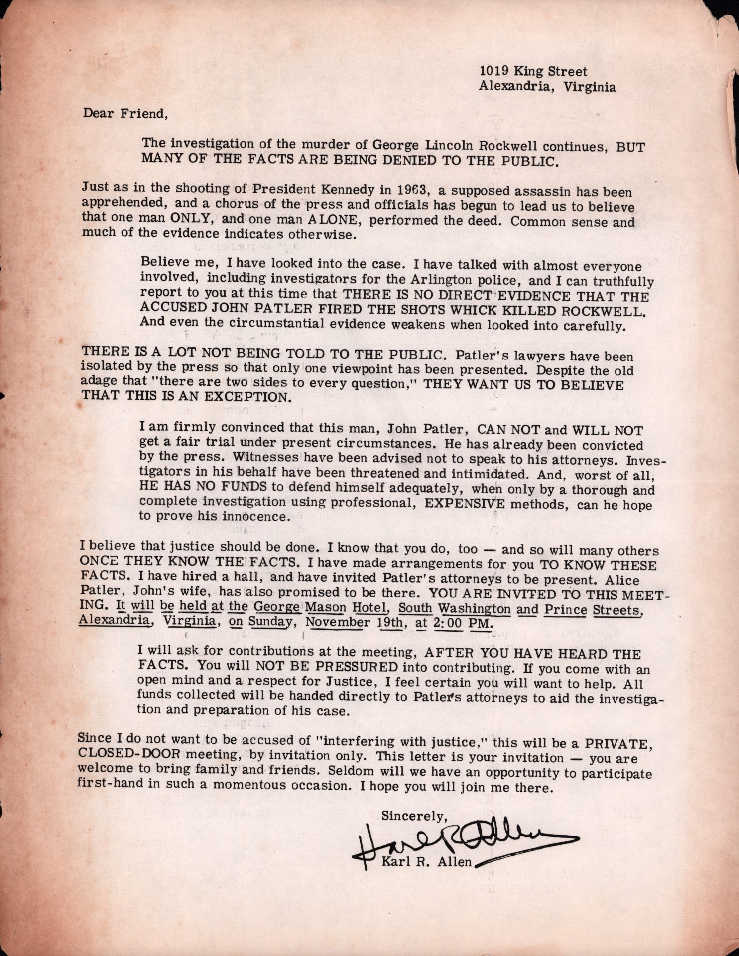 KARL R. ALLEN ON THE MURDER OF GEORGE LINCOLN ROCKWELL