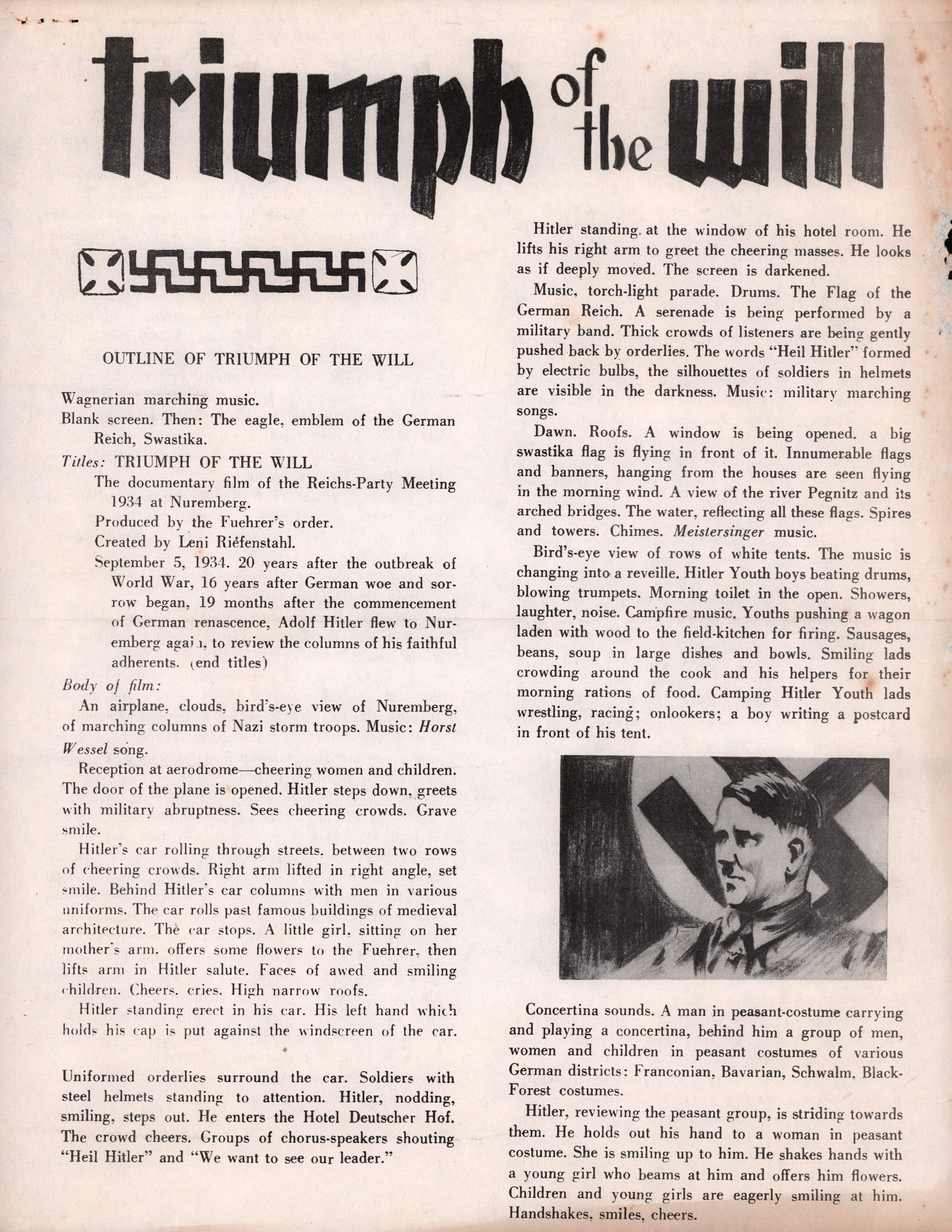 SUPPRESSED FILMS CLUB | OUTLINE OF TRIUMPH OF THE WILL