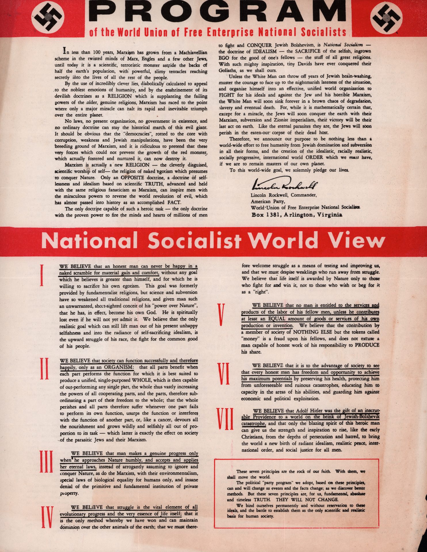 AMERICAN NAZI PARTY | PROGRAM OF THE WORLD UNION OF FREE ENTERPRISE NATIONAL SOCIALISTS (COLOR) Read More »