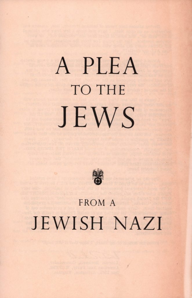 A PLEA TO THE JEWS FROM A JEWISH NAZI