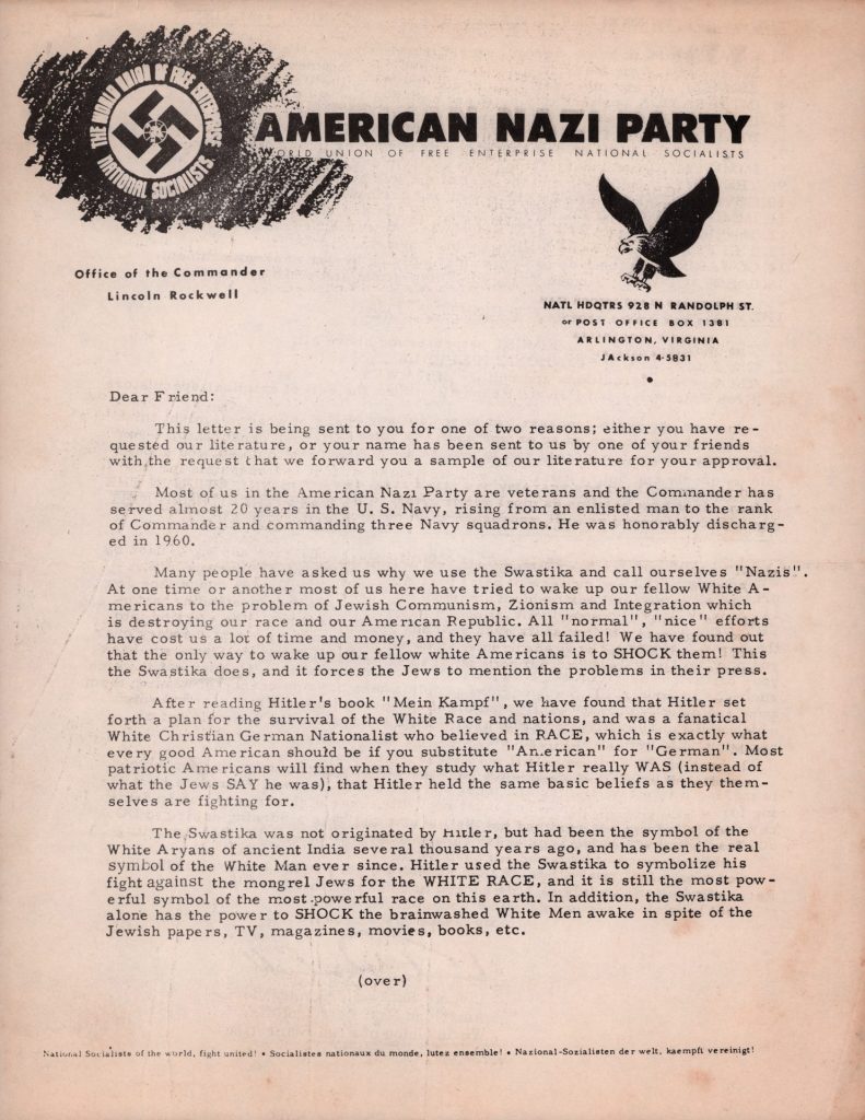 AMERICAN NAZI PARTY | LETTER FROM GEORGE LINCOLN ROCKWELL