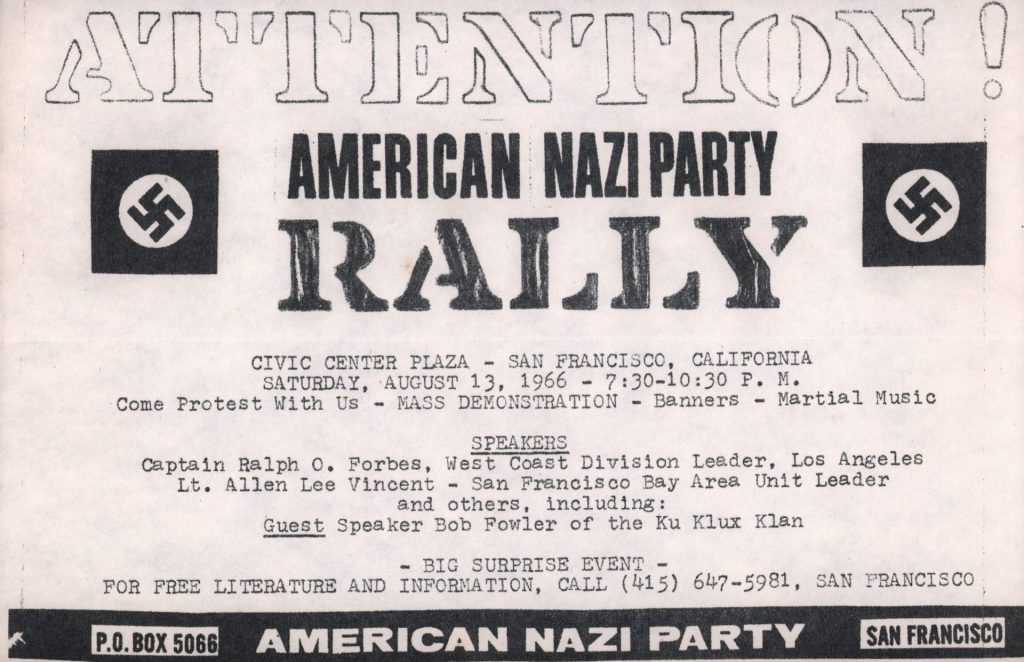 AMERICAN NAZI PARTY | NOTICE OF RALLY, AUGUST 13, 1966