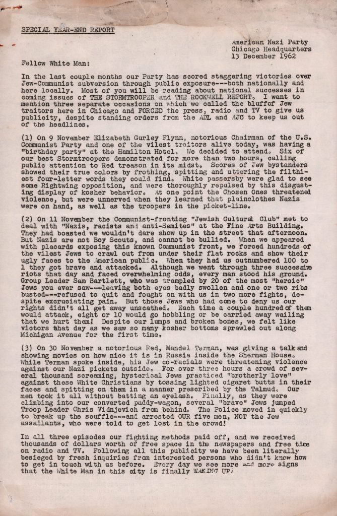 AMERICAN NAZI PARTY | SPECIAL YEAR END REPORT, DECEMBER 13, 1962