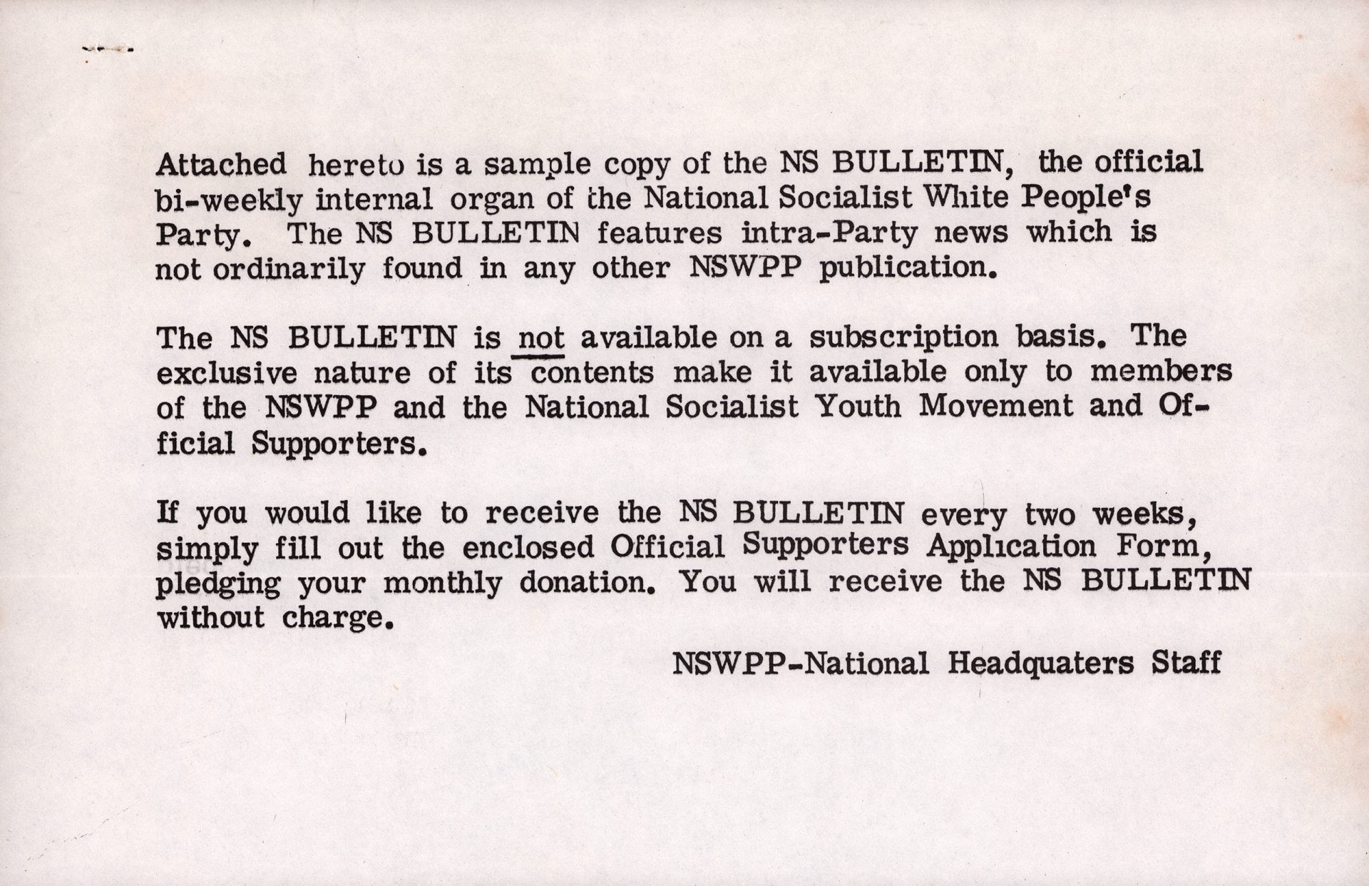 NATIONAL STATE’S RIGHTS PARTY OFFICIAL PLATFORM AND MEMBERSHIP APPLICATION