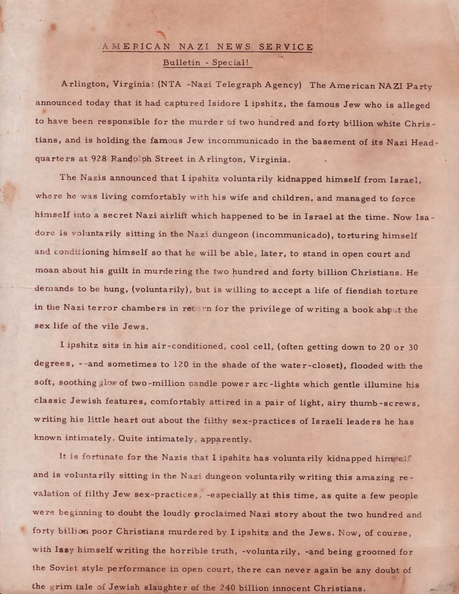 AMERICAN NAZI PARTY | AMERICAN NAZI NEWS SERVICE – CAPTURE OF ISIDORE LIPSHITZ CLICK TO READ Read More »