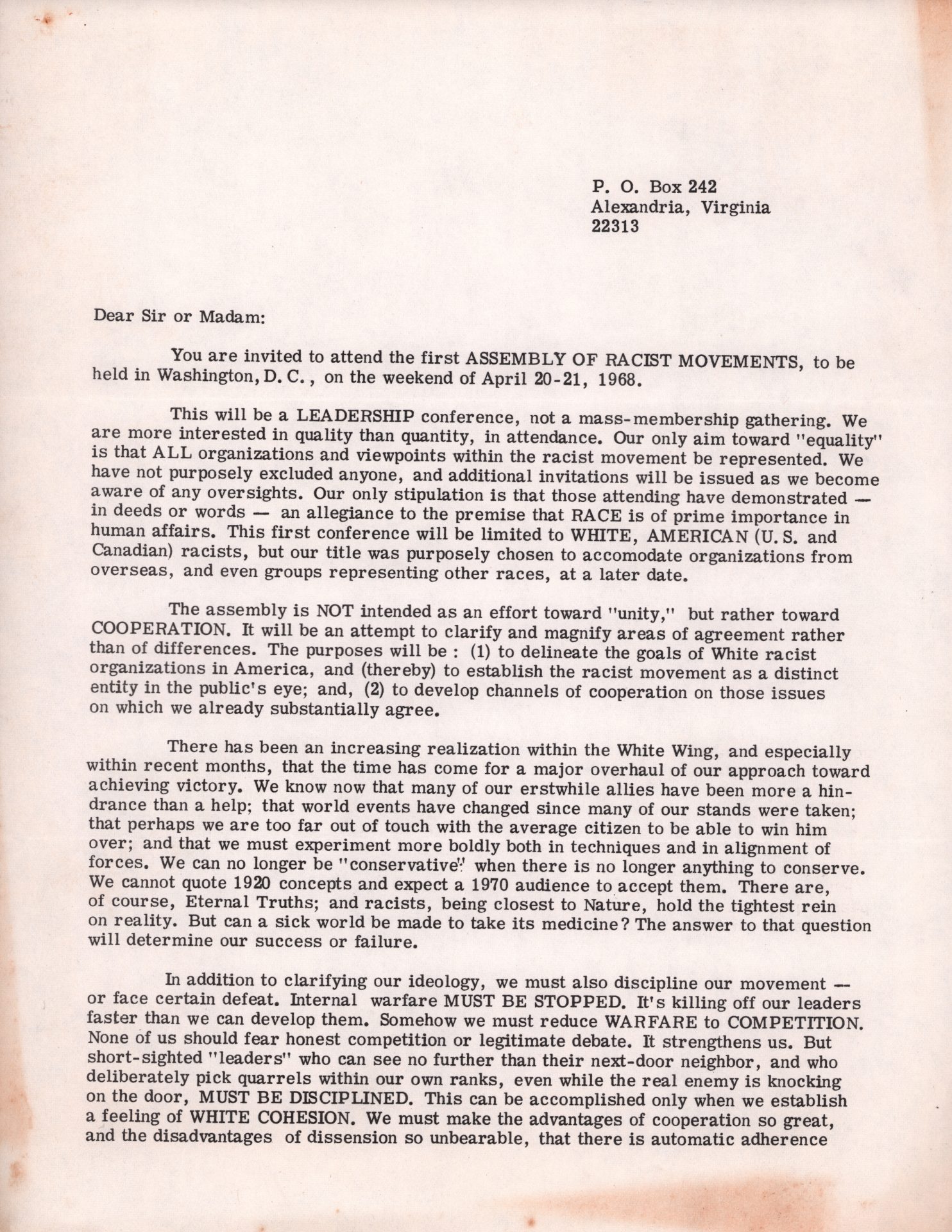 ASSEMBLY OF RACIST MOVEMENTS | 1968 INVITATION
