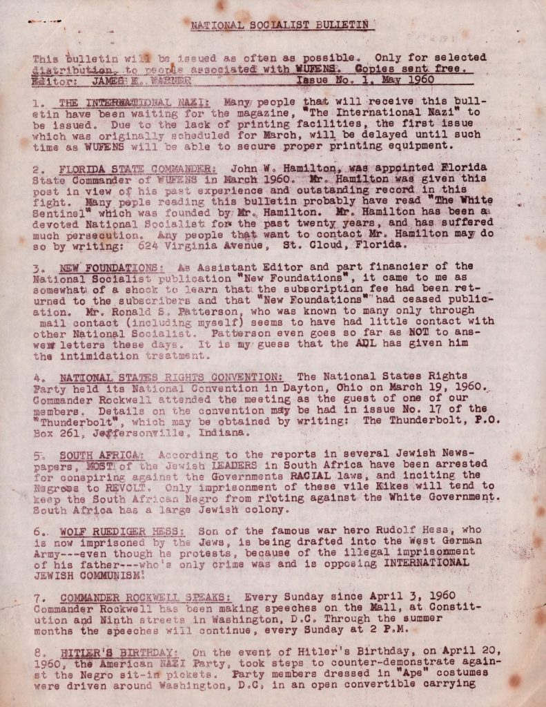 NATIONAL SOCIALIST BULLETIN | ISSUE NO. 1, MAY 1960
