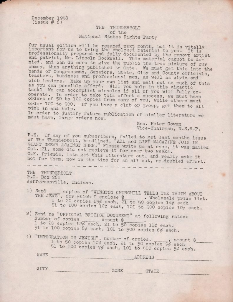 NATIONAL STATE’S RIGHTS PARTY | THE THUNDERBOLT ORDER FORM