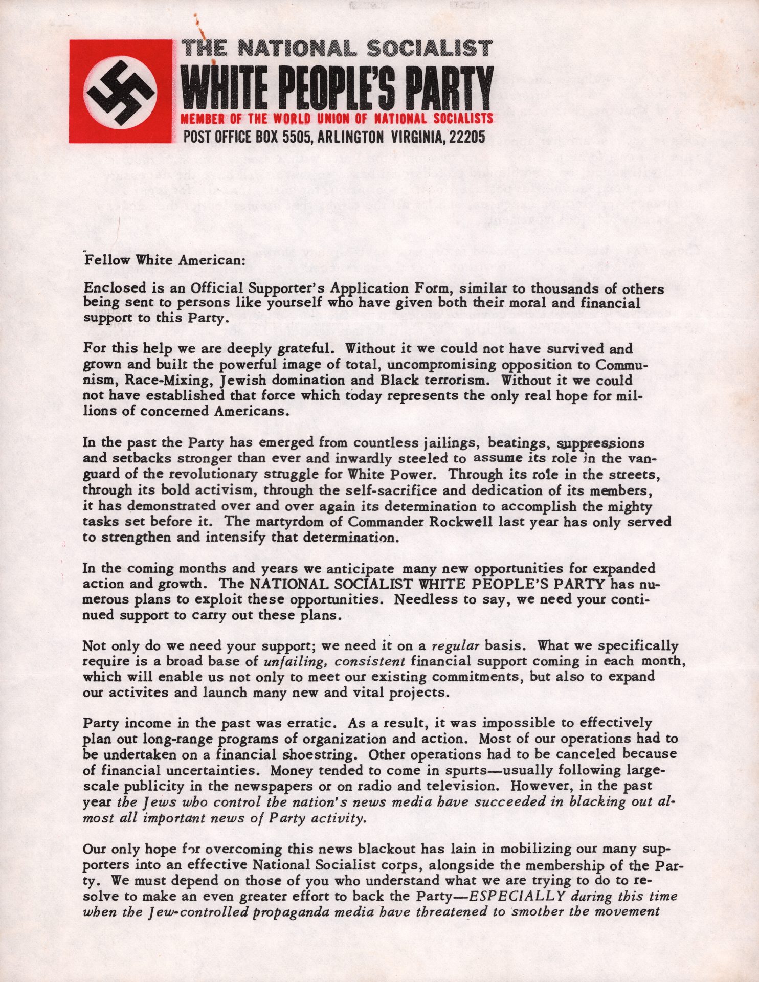 THE NATIONAL SOCIALIST WHITE PEOPLE’S PARTY | OFFICIAL SUPPORTER’S APPLICATION FORM CLICK TO READ Read More »