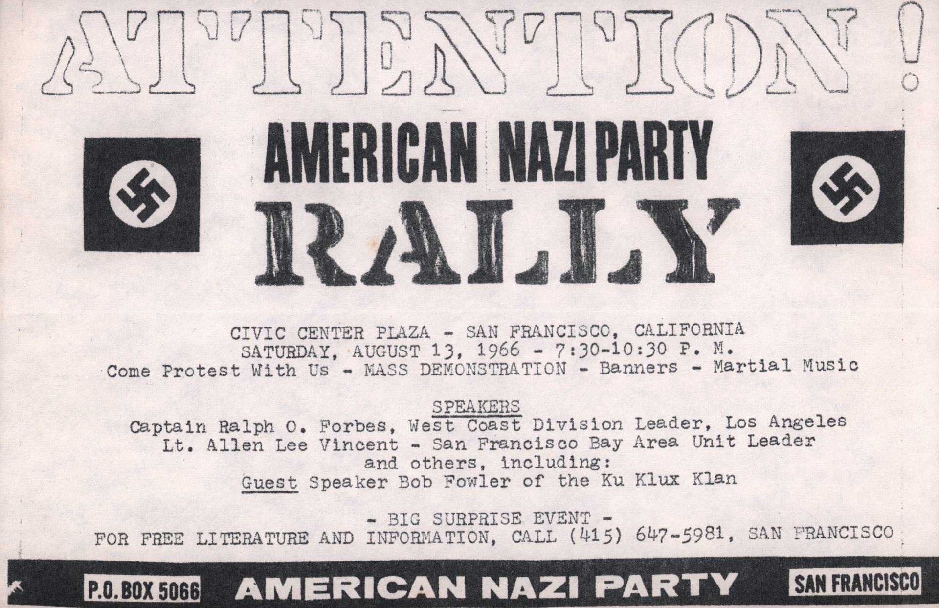 AMERICAN NAZI PARTY | NOTICE OF RALLY, AUGUST 13, 1966