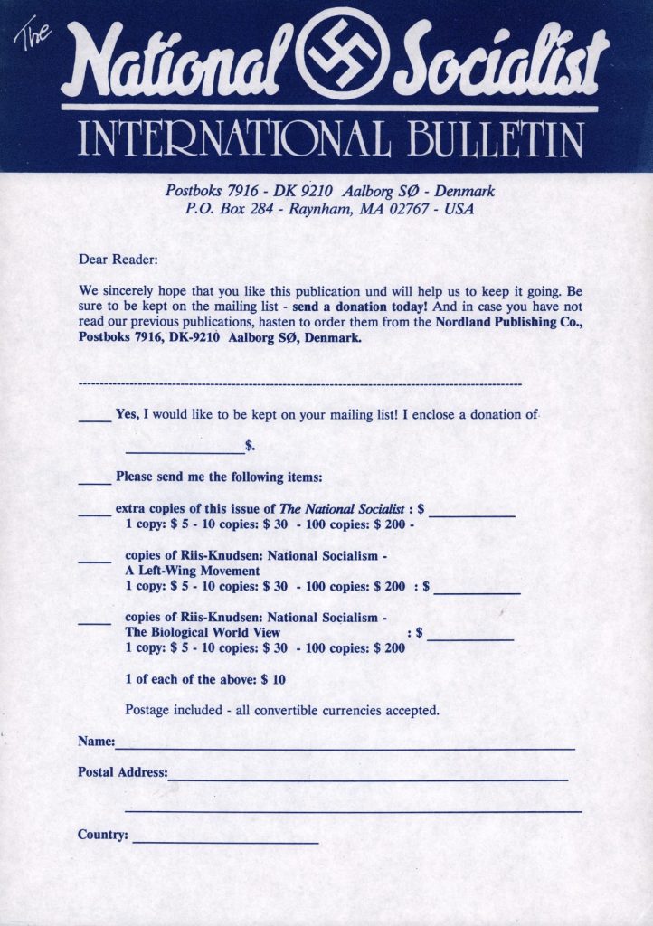THE NATIONAL SOCIALIST INTERNATIONAL BULLETIN | ORDER FORM