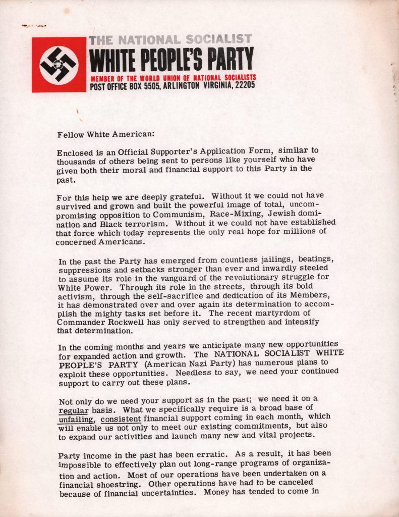 PrevPreviousTHE NATIONAL SOCIALIST WHITE PEOPLE’S PARTY | LETTER FROM MATT KOEHL #1