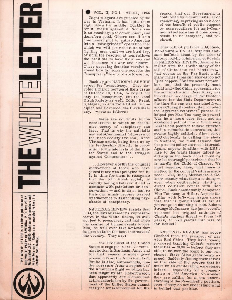 THE WHITE LETTER | VOL. II NO. 1, APRIL 1966