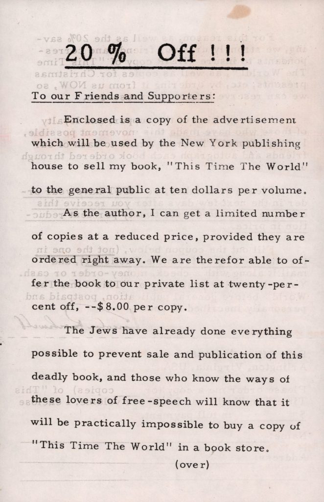 THE NATIONAL SOCIALIST INTERNATIONAL BULLETIN | ORDER FORM